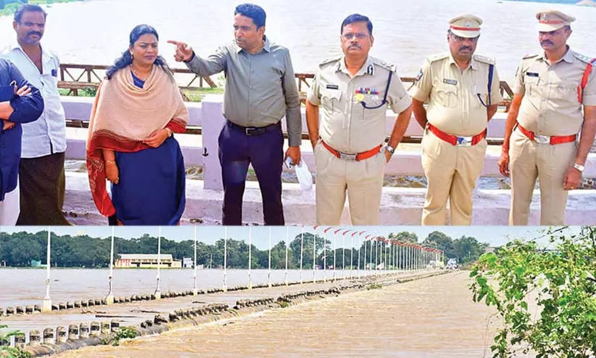 Reassuring farmers, the Collector said there is no need for concern, as the government would provide compensation to every farmer, who suffers crop loss, based on final assessment reports. He emphasised that the government, under the guidance of Chief Minister N Chandrababu Naidu, is committed to the welfare and wellbeing of farmers. He further stated that floodwaters might reach Prakasam Barrage, and warnings have been issued to residents in upstream and downstream areas. Police Commissioner Rajesekhara Babu said that heavy rainfall was recorded in Khammam and Warangal districts of Telangana. In view of this, the police have been alerting people for the past two days.