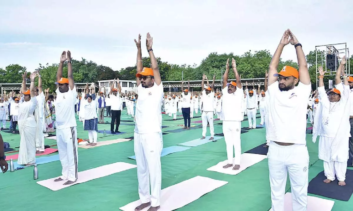 The district-level event was synchronised with the main Yoga Day celebrations held in Visakhapatnam, which featured prominent leaders including Prime Minister Narendra Modi and Chief Minister N. Chandrababu Naidu.