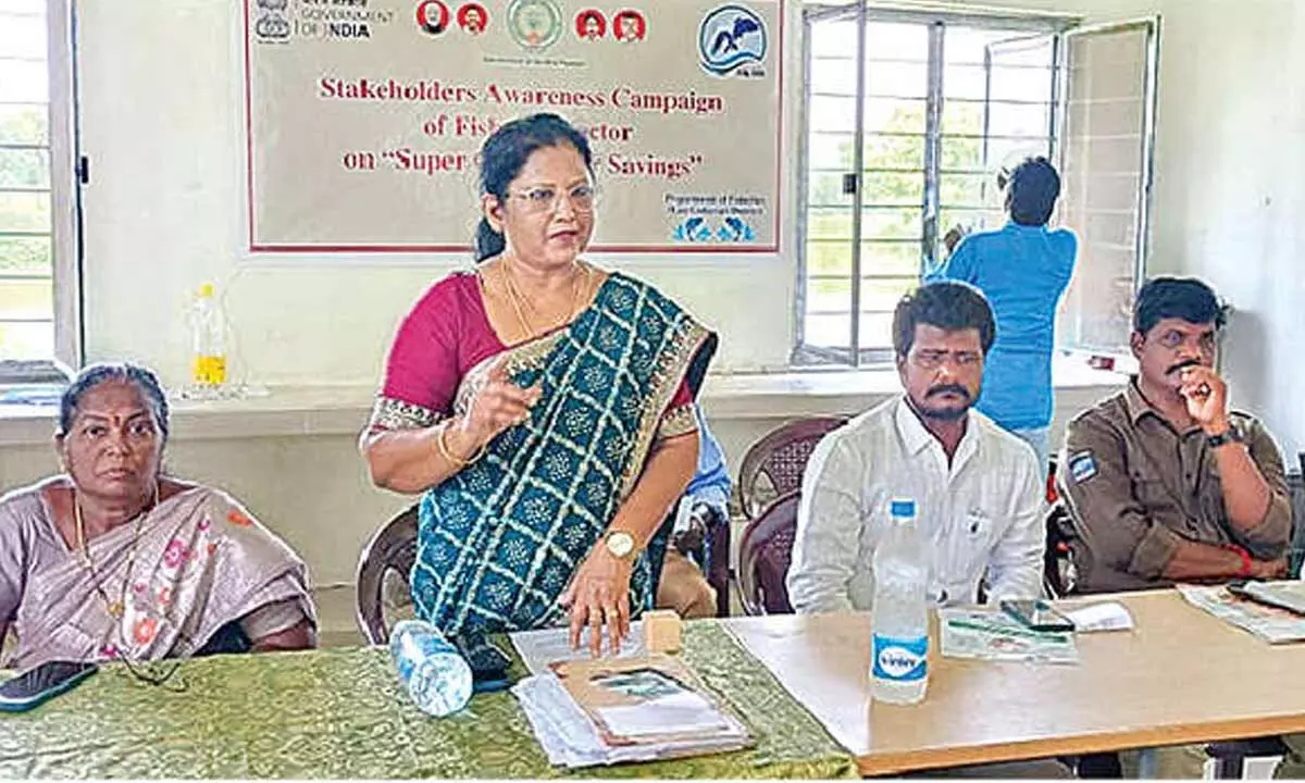 The Andhra Pradesh government is providing a power subsidy to aqua farmers registered with APSADA at a concessional rate of Rs 1.50 per unit. An extension of this power subsidy to aqua farms located in non-aqua zones is also under consideration. This facility alone can result in an average saving of Rs 20,000 per acre for farmers. Furthermore, she noted that the Union Budget 2025-26 has reduced customs duties on shrimp feed, fish feed, and various other inputs. The awareness programme was attended by several officials and local leaders, including Assistant Director of Fisheries T Sumalatha, Fisheries Development Officers S Ganeswara Rao and M Brahmanandam, Assistant Inspector of Fisheries (Korukonda) K Harish, Narendrapuram Village Sarpanch Tangella Musalayya, Narendrapuram Fishermen’s Cooperative Society President Borra Mutyalu, and SuryaraopetaFCS President Rapaka Musalayya, along with many fish farmers and members of fishermen’s cooperative societies.