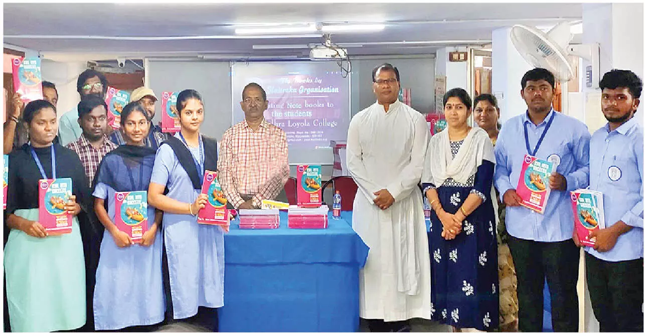 Vijayawada: Maitrika organisation conducted ‘Fly Books’ (notebooks) distribution programme in Father Garden Library at Loyola College.