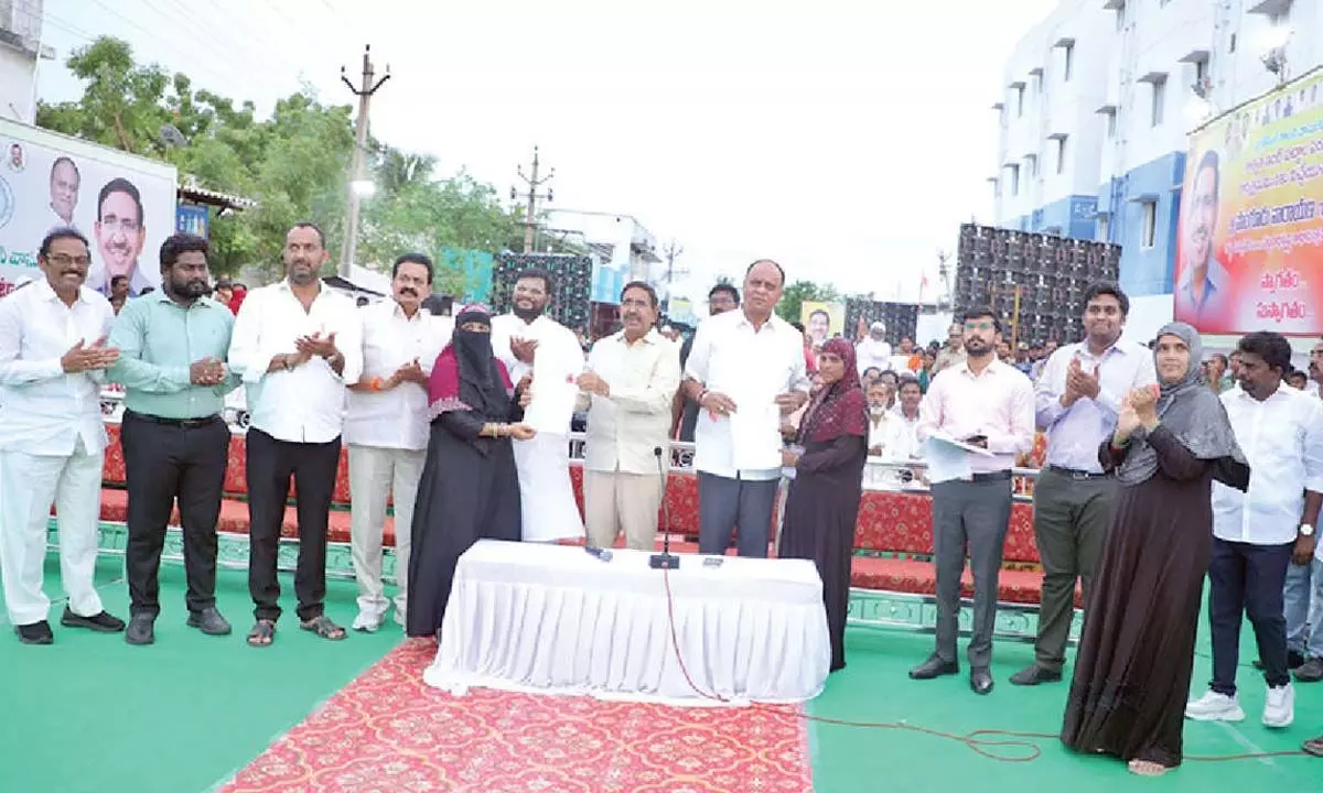 Later, Minister P Narayana and Nellore MP Vemireddy Prabhakara Reddy have distributed house site pattas to the beneficiaries.