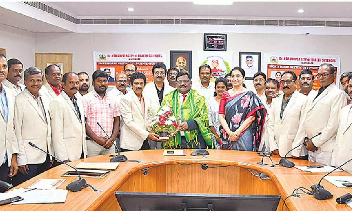 Vijayawada: Dr NTR University of Health Sciences (NTRUHS) on Thursday conducted a meeting of Physical Directors from all affiliated medical colleges to finalise the Sports Calendar for 2025–26. The meeting was chaired by Vice-Chancellor Dr P Chandrasekhar and attended by Registrar Dr V Radhika Reddy.