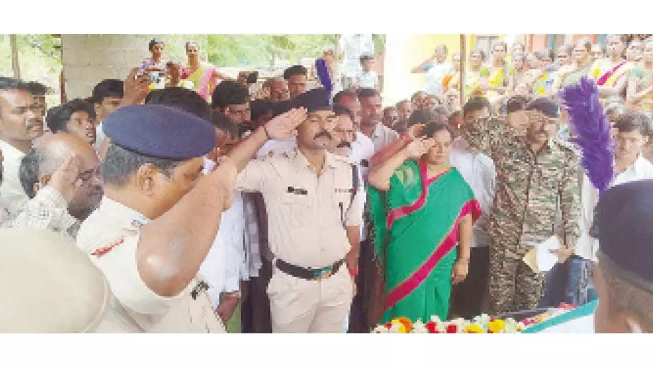 Upon the arrival of his mortal remains in his native village, MLA Paritala Sunitha, accompanied by CRPF officials, visited the family to offer her condolences. She placed the national flag over the jawan’s body and rendered a ceremonial salute as a mark of respect.