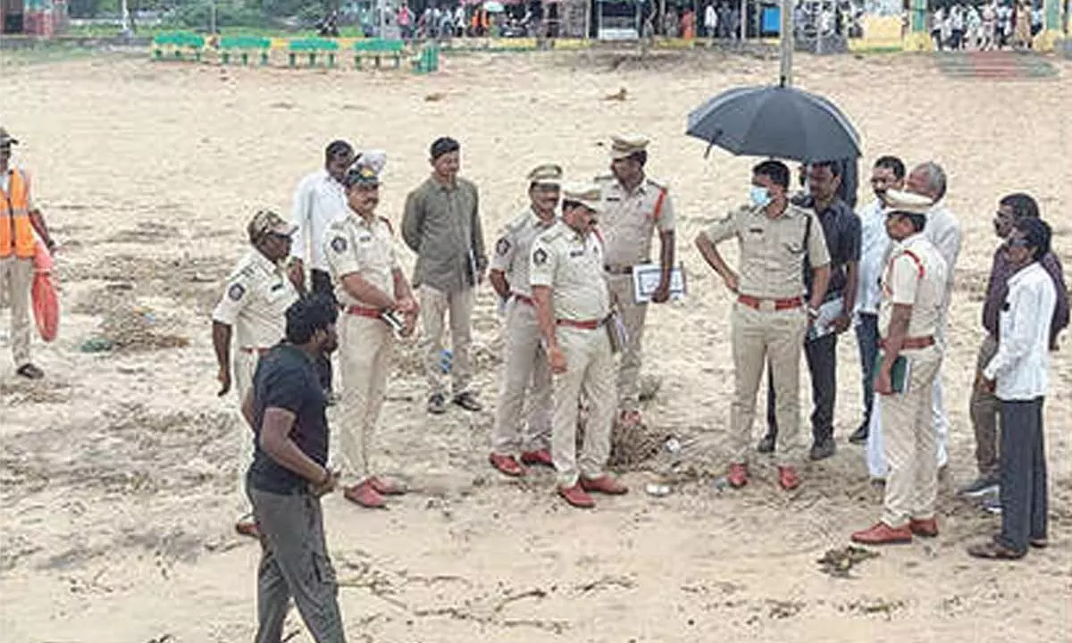 Prakasam SP Harshavardhan Raju inspecting Pakala beach on Monday