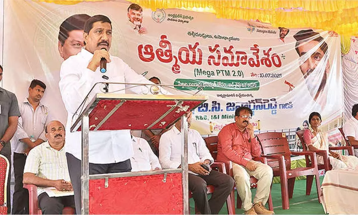 Banaganapalle: Minister for Roads & Buildings, Investments and Infrastructure, BC Janardhan Reddy, attended the Mega Parent-Teacher Meeting (PTM) held at Zilla Parishad High School, Kolimigundla, under the Banaganapalle constituency on Thursday.