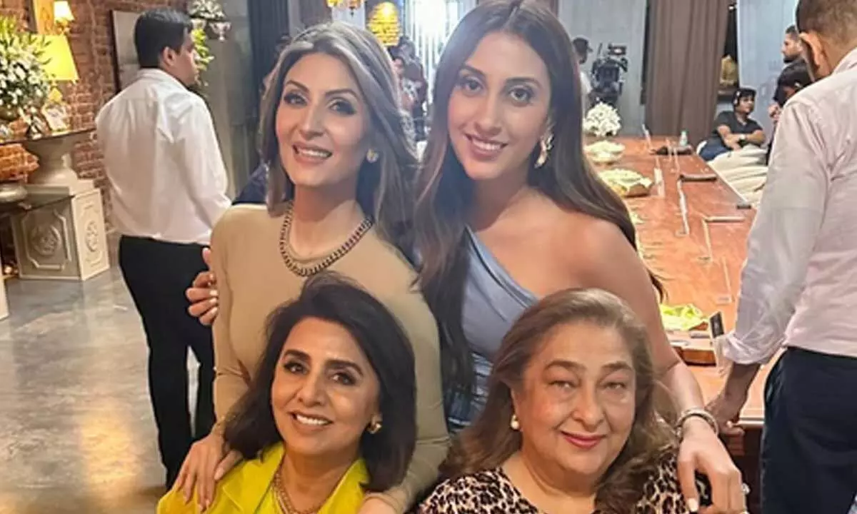 Riddhima took to her official Instagram handle and treated the netizens with a behind-the-scenes snap from the show, that featured her posing with mother Neetu Kapoor, aunt Reema Jain Kapoor, and cousin Armaan Jain's wife Anissa Malhotra Jain.