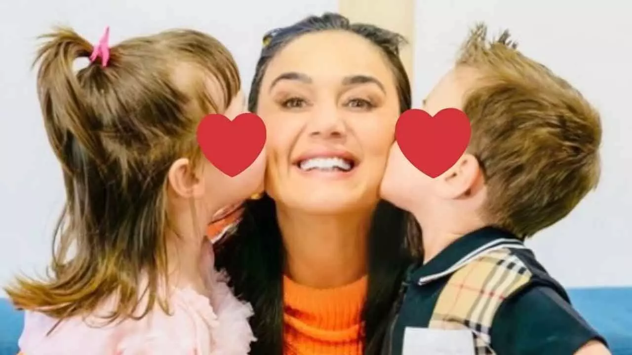 Preity took to Instagram, where she is seen holding her children. Both Gia and Jai are kissing her cheeks, and their faces are covered with red heart emojis. Meanwhile, the actress is flashing a toothy smile.