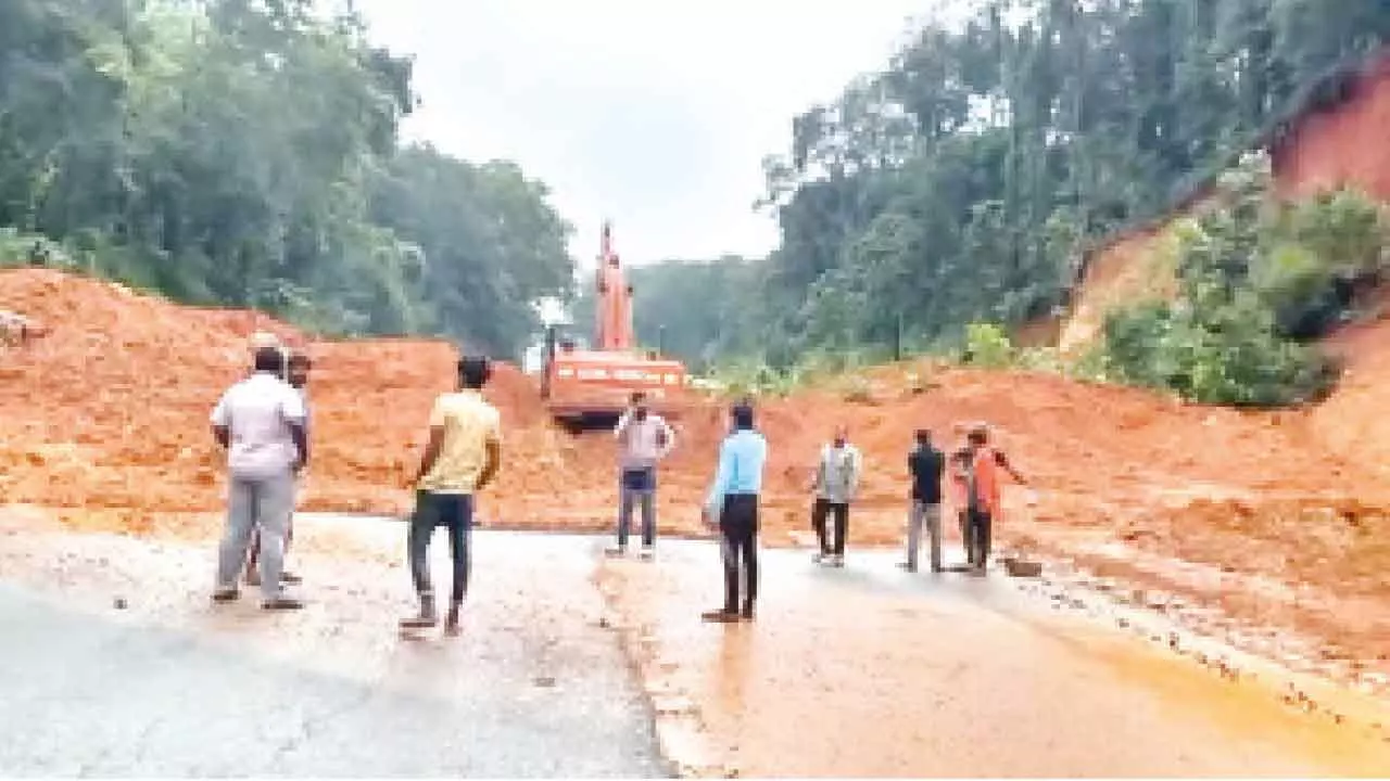 Mangaluru: Persistent heavy rains have triggered landslides at multiple locations in Dakshina Kannada district, leading to traffic disruption, road blockages, and property damage.