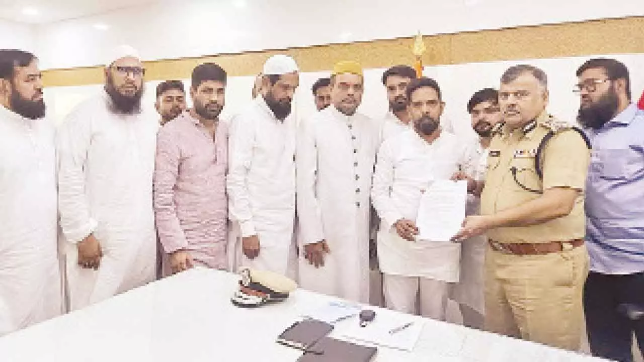 Hyderabad: A delegation of Congress minority leaders led by Mohammed Faheemuddin Qureshi (Vice Chairman and President, TMREIS), Syed Gulam Afzal Biyabani Khusro Pasha, (Chairman, Telangana State Haj Committee), Osman Mohammed Khan (TPCC Secretary), Maulana Khaleeq Sabir (General Secretary, Jamiat), and others met Telangana DGP Jitender on Wednesday and submitted a memorandum demanding urgent action over the April 22 attack on Taleem-ul-Quran Madrasa and Dargah Hazrath Gareeb Shah Wali (RH) in Jinnaram Mandal, Sangareddy district.
