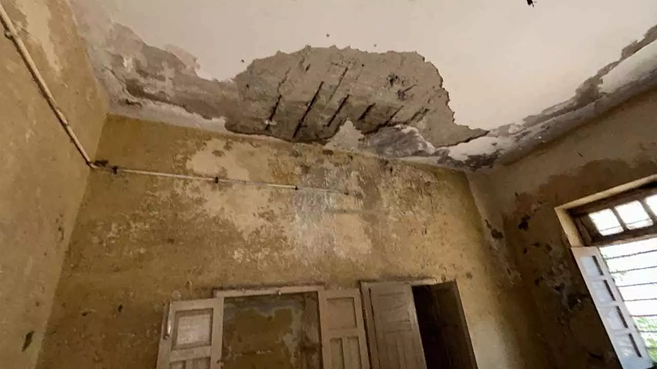 Hyderabad: Panic spread among students at a boys’ hostel in Osmania University on Tuesday after a portion of the ceiling in a hostel room and washroom collapsed, injuring a fourth-year student. Concerned for their safety, some students called for the immediate renovation of the hostel.