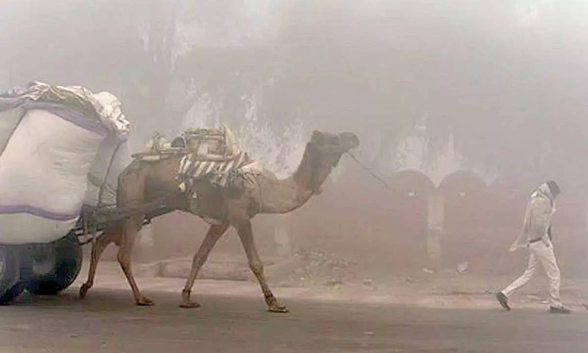 Jaipur: Densefog blanketed several districts of Rajasthan, including Sri Ganganagar, Jaisalmer, and Alwar, on Monday morning, severely affecting road visibility and traffic movement.