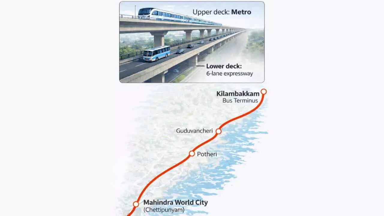 Tamil Nadu Government has given in-principle approval to NHAI to build a 6-lane, 18.4-km elevated corridor from Kilambakkam Bus Terminus (KCBT) to Mahindra World City (Chettipunyam), with pillars designed for a future metro line.