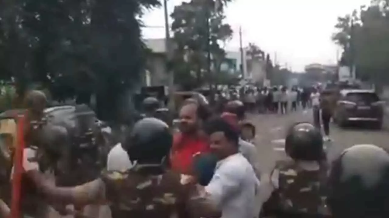 Congress leaders have condemned the police action, calling it a violation of democratic rights and demanding an impartial inquiry.