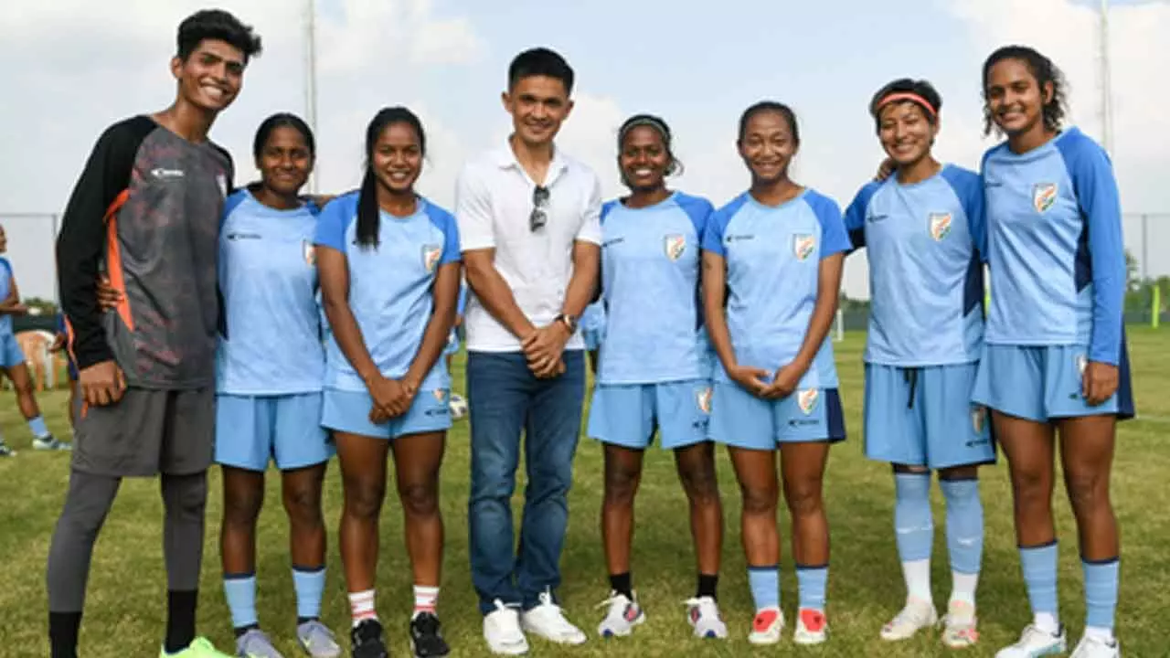 Sunil Chhetri visits women's national camp in Bengaluru ahead of international friendlies