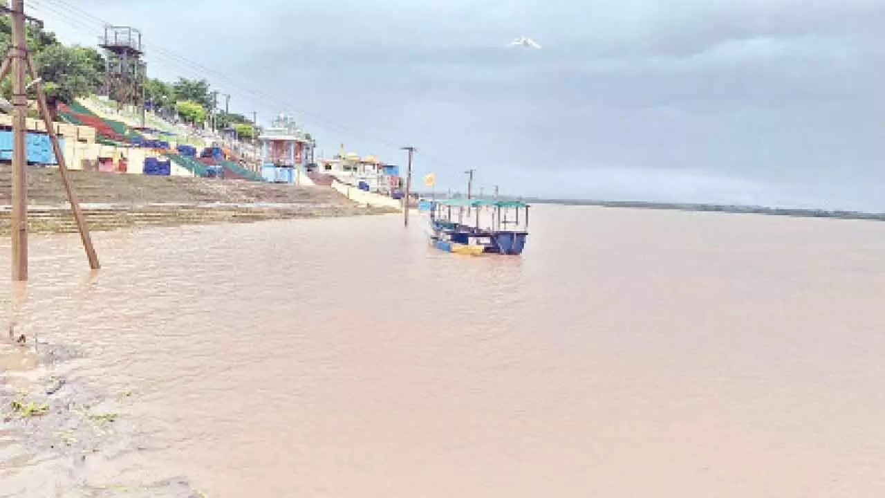 Khammam: With heavy rains in upper catchment area and releasing of water from upstream projects water level in river Godavari at Bhadrachalam in Kothagudem district has been rising steadily.