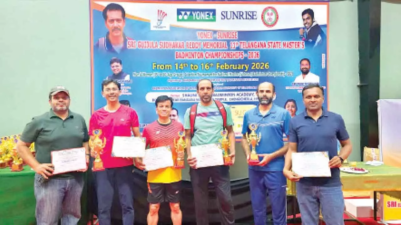Hyderabad: The Shashidhar Badminton Academy (SBA), Kowkoor, Secunderabad, delivered an outstanding performance at the Yonex Sunrise Sri Gujjala Sudhakar Reddy Memorial 11th Telangana State Masters Badminton Championships 2026, held from February 14 to 16 at the Shalini Suresh Badminton Academy in Hyderabad. Conducted under the aegis of the Badminton Association of Telangana and SATS, the tournament saw SBA veterans dominate multiple categories.