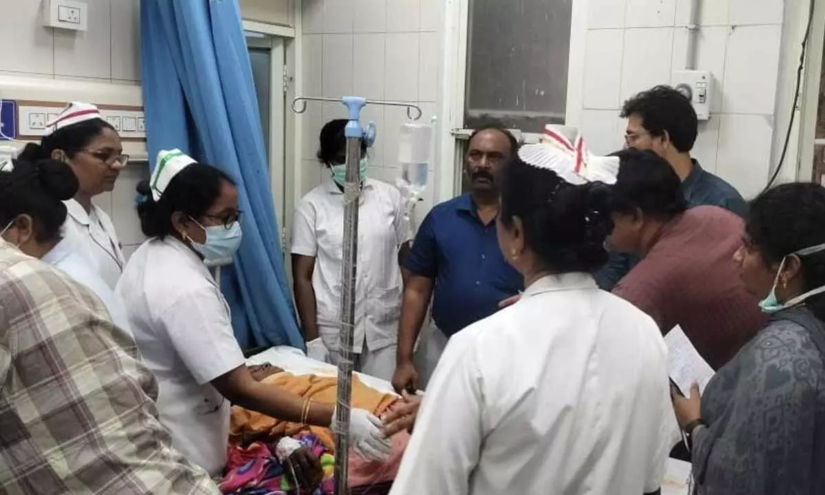 Visakhapatnam: A private travel bus turned turtle, injuring 12 passengers travelling in the vehicle. The incident happened at Anandapuram National Highway on Sunday morning. The victims were shifted to King George Hospital for treatment under the supervision of the hospital Superintendent P Sivanand.Of the 12 injured, the condition of one is said to be serious, while two others are getting treated in the orthopaedic ward. Nine persons received minor injuries.