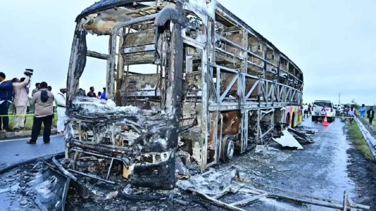 Kurnool/Hyderabad: In a ghastly pre-dawn tragedy on Friday, at least 20 passengers were burnt alive when a Bengaluru-bound private travel bus from Hyderabad, belonging to Vemuri Kaveri Travels, caught fire near the Ullindakonda Cross, close to Chinnatekur village in Kurnool district.