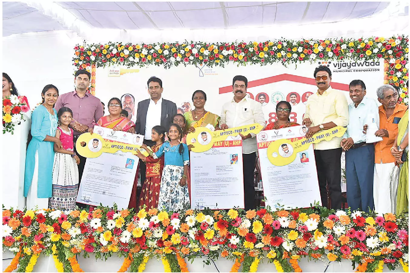 Vijayawada: In a major boost to affordable housing, the long-cherished dream of owning a house became a reality for thousands of beneficiaries as APTIDCO houses were distributed at NTR Nagar in Jakkampudi of Vijayawada Rural mandal in NTR district on Monday.