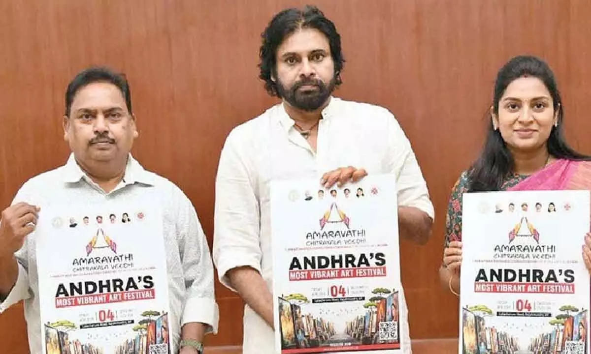 Deputy Chief Minister K Pawan Kalyan unveiling the poster of art festival ‘Amaravati Chitrakala Veedhi’