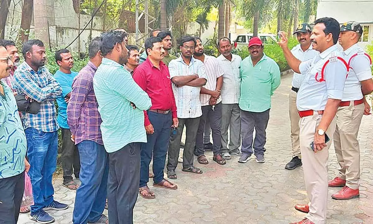Traffic Inspector Venkata Narayana explained to the violators the importance of following safety rules as they would save them from loss of life.