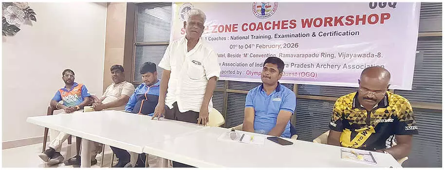 The inaugural programme was held on Monday at a hotel near Ramavarappadu Ring Road in the city. A total of 44 men and women archery coaches from Andhra Pradesh, Telangana, Karnataka, Kerala, Tamil Nadu, Puducherry, Andaman & Nicobar Islands, and Odisha are participating in the workshop.