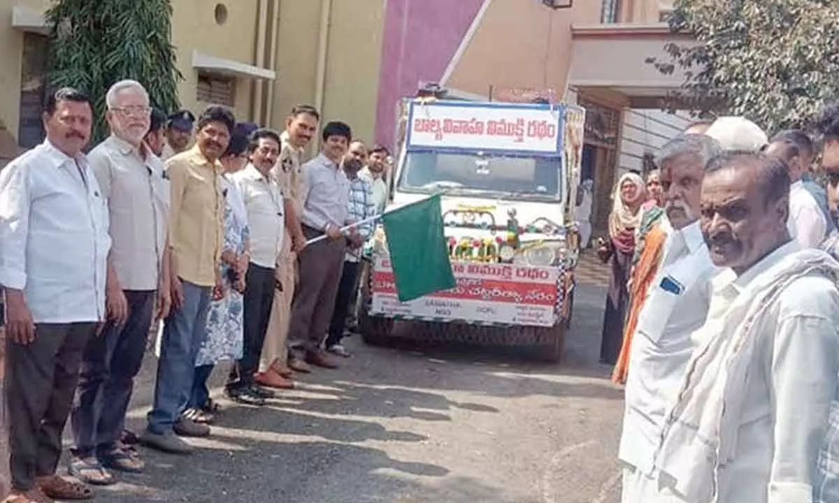 Kadiri: The campaign chariot for the liberation of child marriage, designed by Samatha NGO to create widespread awareness on child marriage, was launched by Kadiri Revenue Divisional Officer VVS Sharma, Kadiri DSP Shiva Narayana and Kadiri CDPO Radhika.
