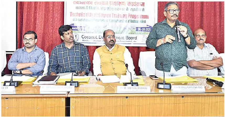 Rajamahendravaram : An awareness programme focused on enhancing the technical capacity of coconut farmers was conducted at the Central Tobacco Research Station here on Wednesday. The event was a collaborative effort between the Coconut Development Board (CDB) and the Andhra Pradesh Horticulture Department.