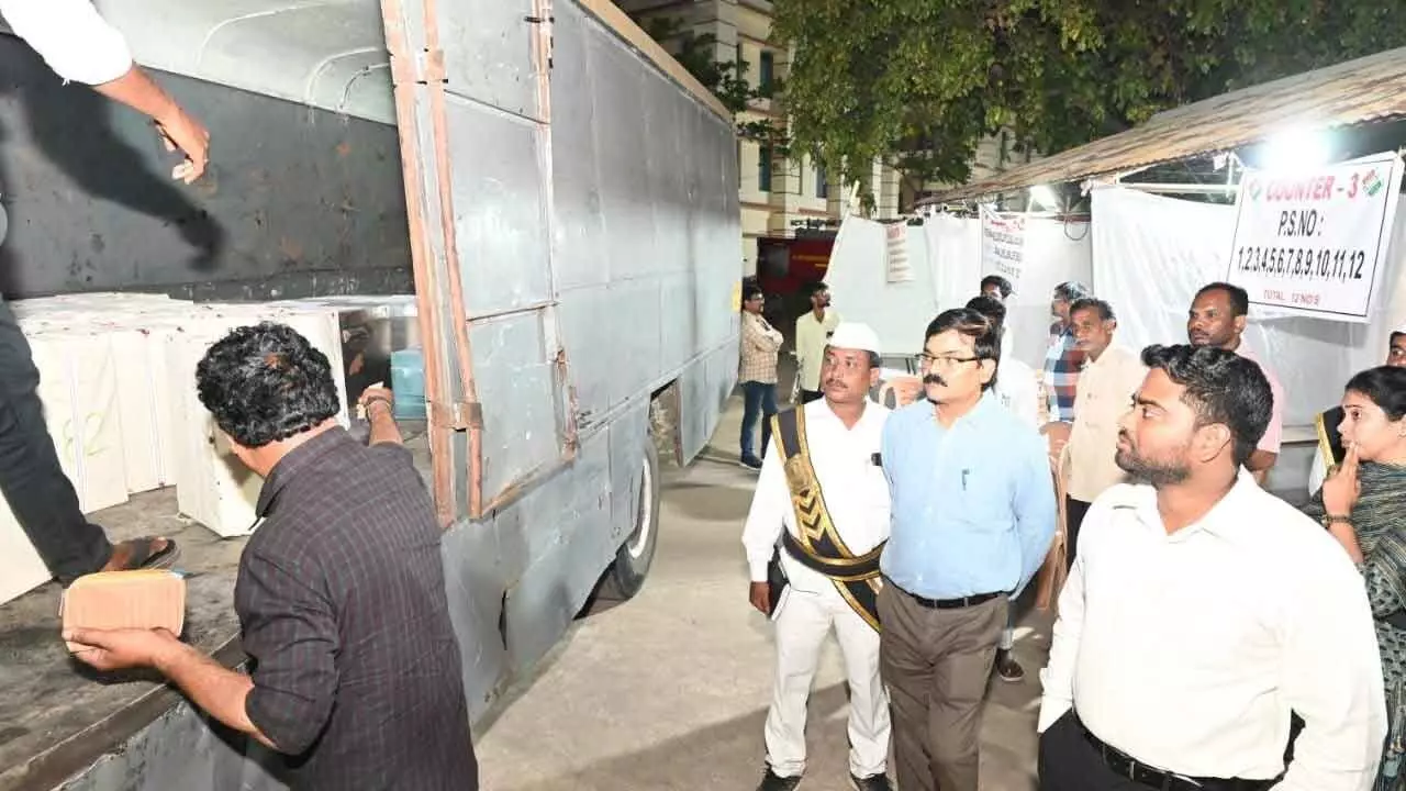 Eluru: With the polling for Graduate MLC constituency election of the combined East and West Godavari districts concluding peacefully, the staff from six districts namely Eluru, West Godavari, East Godavari, Dr BR Ambedkar Konaseema district, Alluri Seetharamaraju district and Kakinada transported the ballot boxes under tight police security from Thursday night to Friday morning. The ballot boxes were sealed in the strong rooms set up at Sir CR Reddy Engineering College here by the revenue divisional officials concerned in the presence of the candidates.
