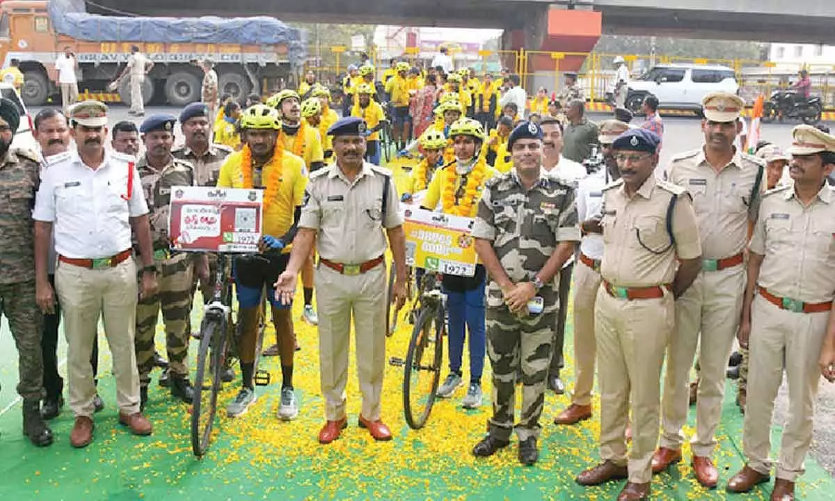 Ongole: Central Industrial Security Force (CISF) cycle rally, the Vande Mataram Coastal Cyclothon – 2026, aimed at promoting coastal security and raising awareness about drug abuse, arrived at Prakasam district police headquarters here on Tuesday.