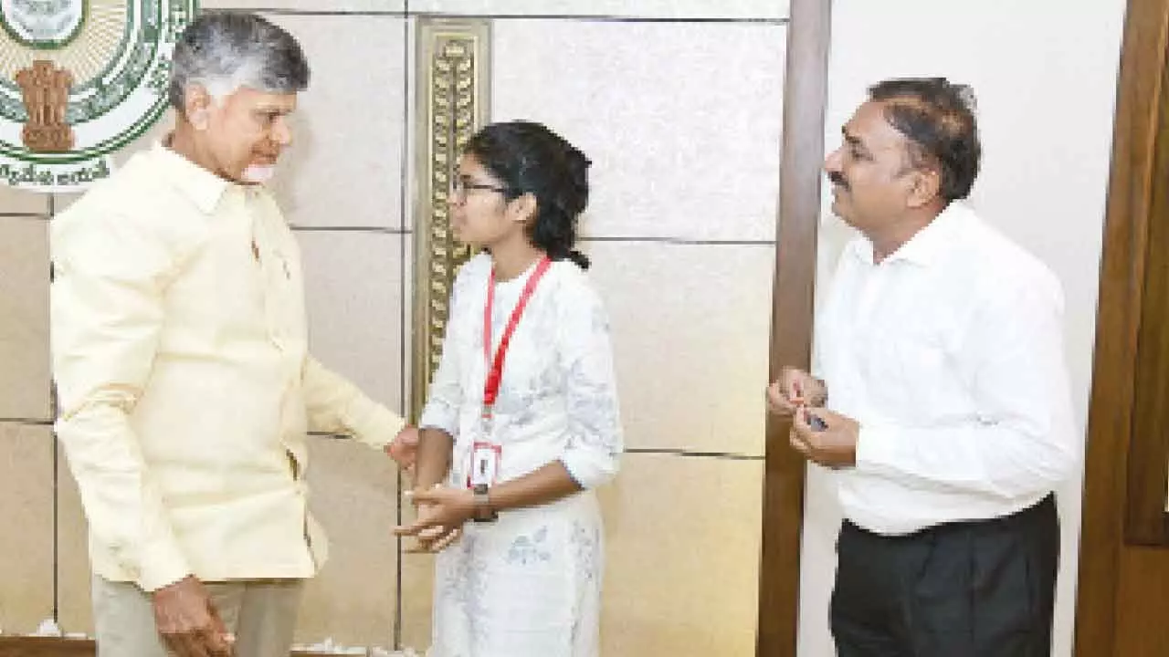 Vijayawada: Chief Minister N Chandrababu Naidu asked the brand ambassador of Amaravati Ambula Vaishnavi to promote the capital city of Amaravati on a largescale.