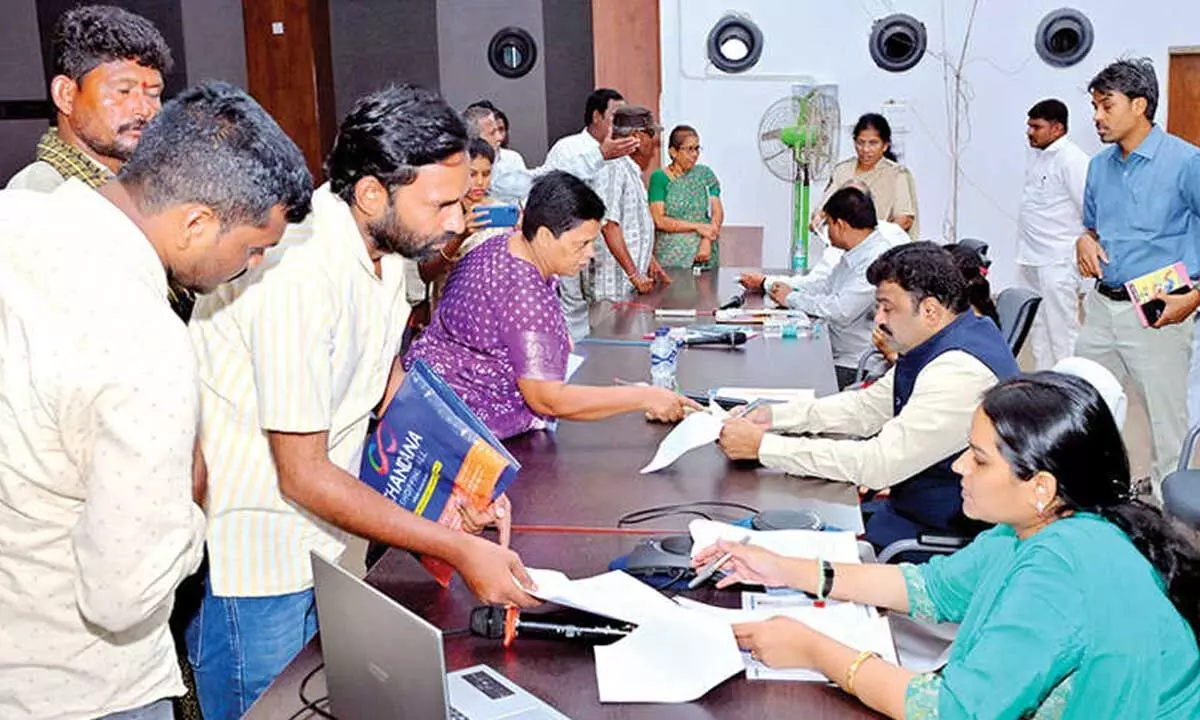 As a gesture, collector stepped down from the dais to personally interact with talented individuals and petitioners gathered outside, receiving their petitions directly. On Monday, during the Public Grievances Redressal Platform program held at the Sunayana auditorium in the collectorate. After accepting the petitions, the collector conducted a review meeting with officials regarding the status of grievance redressal.