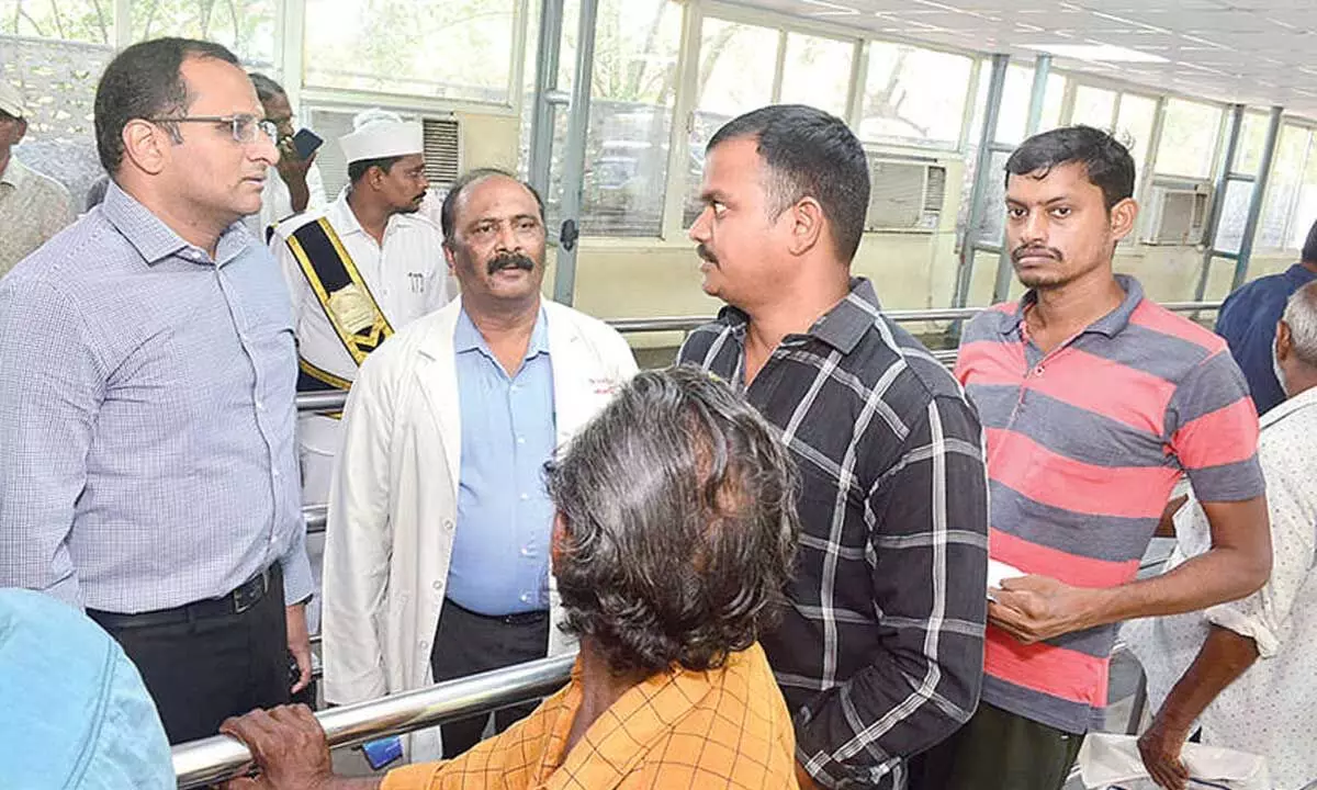 He spoke to the patients about how long they were waiting to get an OP and whether the staff were patient-friendly or not. Further, Harendhira Prasad sought suggestions from the patients and their attendants.