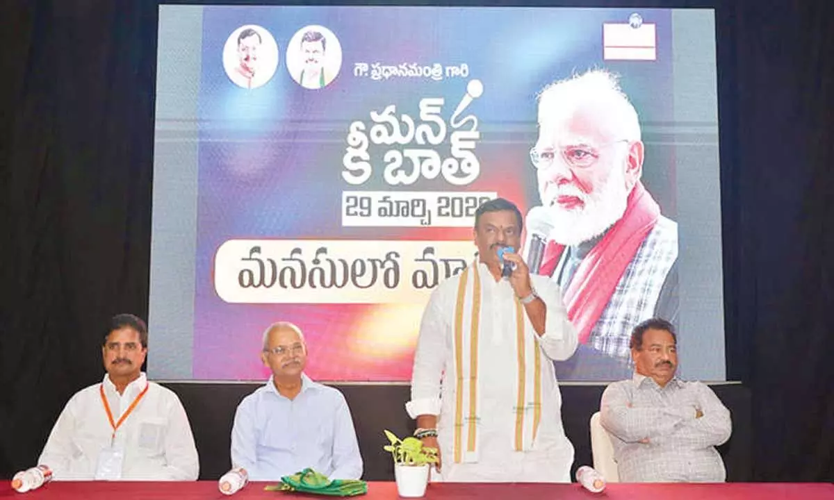 Guntur: BJP state president PVN Madhav said that the Mann Ki Baat programme, initiated by Prime Minister Narendra Modi in the very first year of his tenure and continued uninterruptedly, is highly essential and inspirational for the youth. Stating that in every episode, the Prime Minister highlights several topics beneficial to students and youth, he urged them to grasp these ideas for their development.