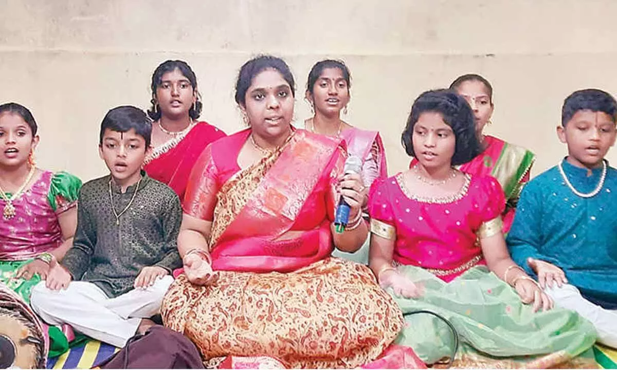 The Keerthanas were soulfully rendered by N Naga Sathivika, K Sri Raenu, T Gargeyi, V Divyanshi, B Lakshana, P Jignesh, and A Gurucharan, the dedicated disciples of Chalikonda Siri.