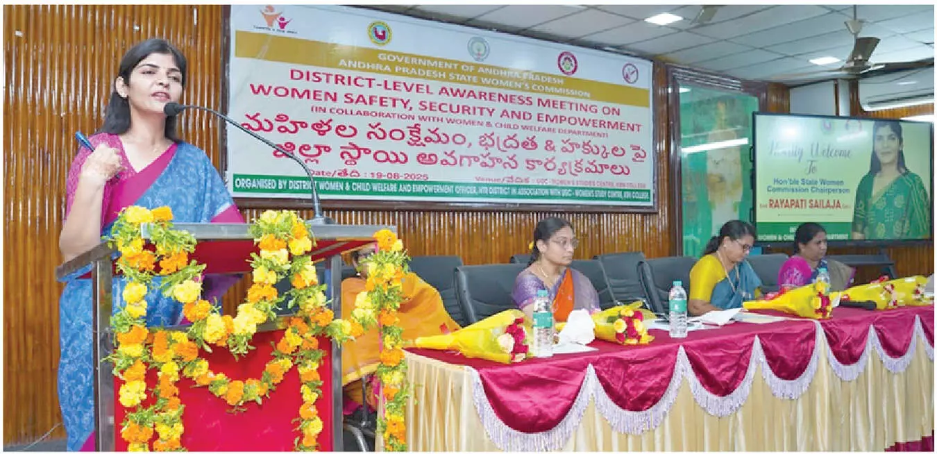 Among those present were CWC member Radhakumari, district women and child welfare and empowerment officer Sheik Ruksana Sultan Begum, Women’s Commission secretary Anuradha, KBN College principal Dr G Krishnaveni, secretary and representative T Srinivas, MEOs, CDPOs, ICC committee members, faculty, One Stop Centre staff, and students.