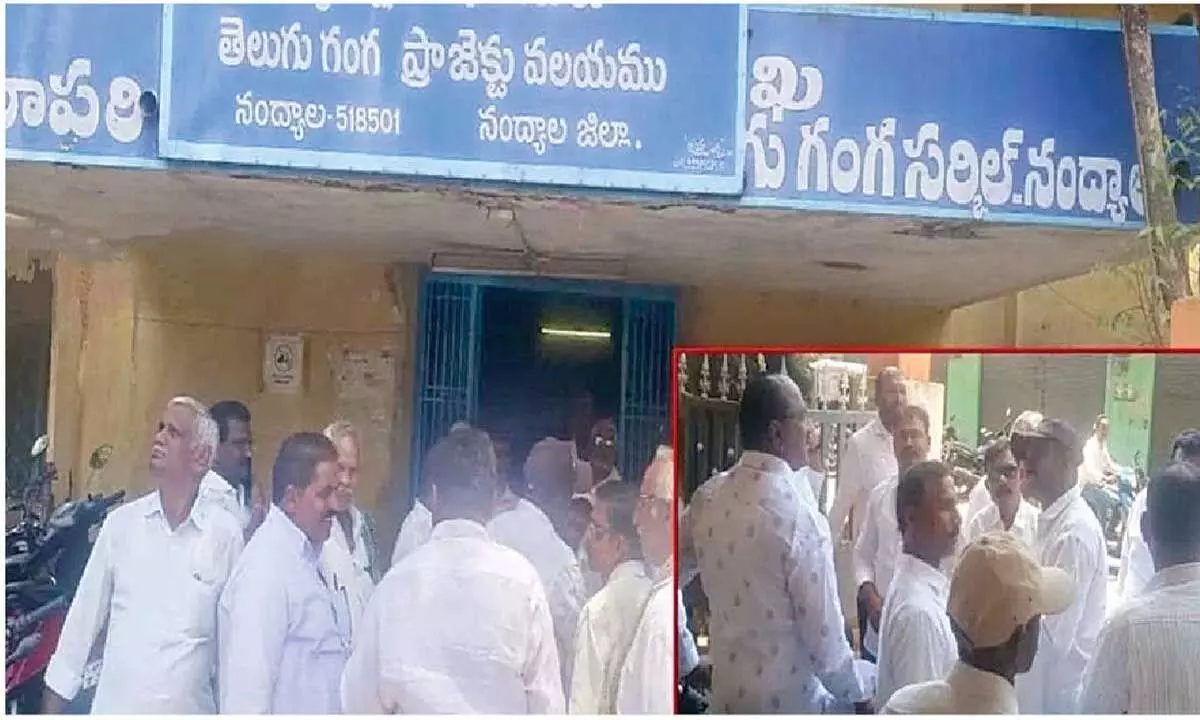 Nandyal: Farmers in the K-C Canal command area staged a protest on Wednesday at the Telugu Ganga office in Nandyal town, demanding immediate water supply to save their drying crops. They expressed distress, questioning whether officials would provide water or force them into losses.
