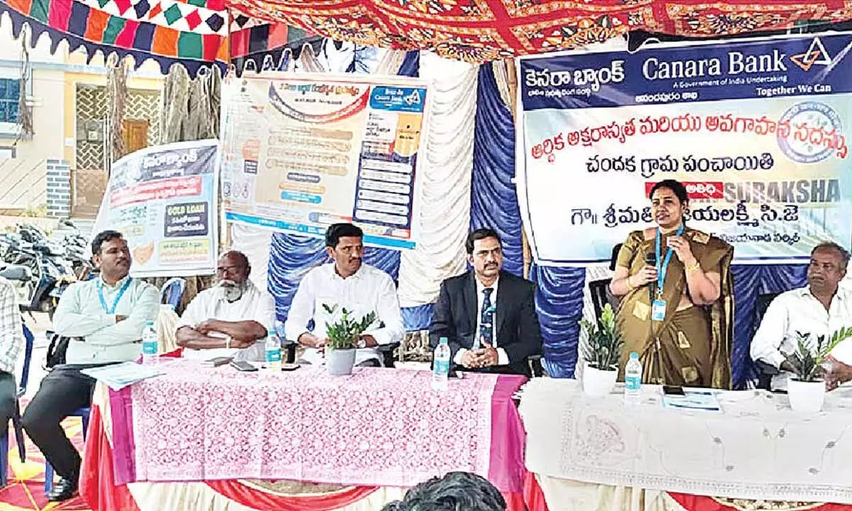 Visakhapatnam: As part of the financial inclusion drive, an awareness camp, ‘Suraksha Jyothi campaign’ was conducted at Chandaka village. Organised by Canara Bank, Anandapuram branch, the main objective of the event was to educate people on social security schemes, cyber frauds and importance of Re-KYC and updating nomination details in the accounts.