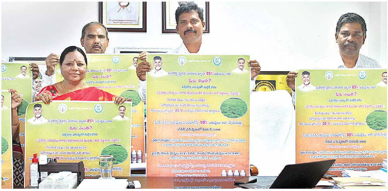 The Chief Minister has directed a reduction of 4 lakh metric tonnes, bringing the target consumption down to 32.5 lakh metric tonnes. To achieve this goal, the Department of Agriculture has formulated a comprehensive action plan under the theme “Back to the Roots,” focusing on partially replacing chemical fertilizers with organic alternatives. Director Dilli Rao emphasised the detrimental effects of the indiscriminate use of nitrogen-based fertilizers, particularly urea in crops like paddy and maize. To ensure widespread awareness and adoption, the department is intensifying its outreach efforts through wall charts, pamphlets, posters and mass outreach programmes under the “Polam Pilustondi” initiative.