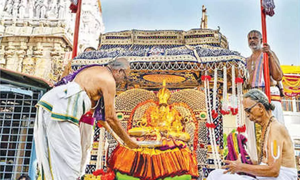 On Wednesday, as a part of ongoing Karthika Brahmotsavams, the Vahana Seva, commenced at 8 am and witnessed enthusiastic participation from devotees.