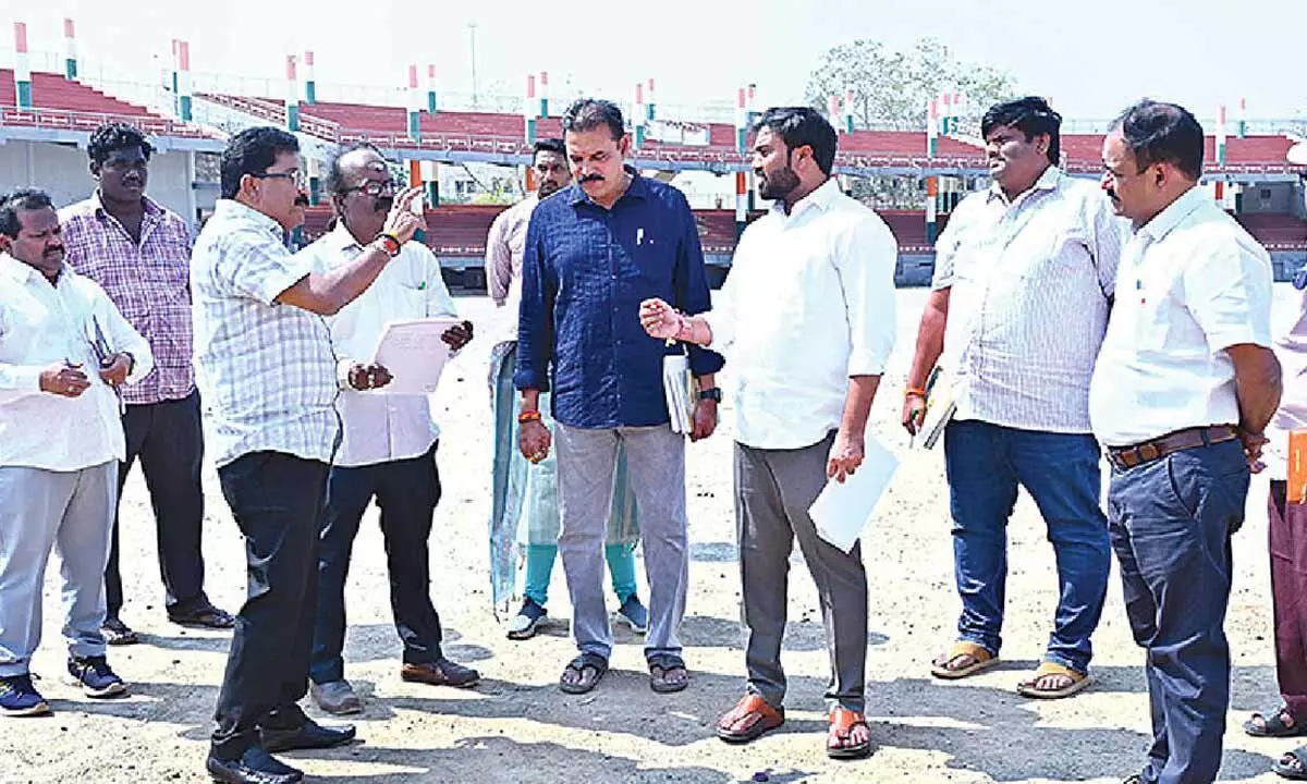As part of the arrangements, Sports Authority of Andhra Pradesh (SAAP) Chairman Animini Ravi Naidu on Friday inspected the sports facilities and infrastructure at the stadium. Accompanied by officials of the Vijayawada Municipal Corporation and the Saap engineering wing, Ravi Naidu conducted a detailed review of the playing arenas, grounds, and related infrastructure.