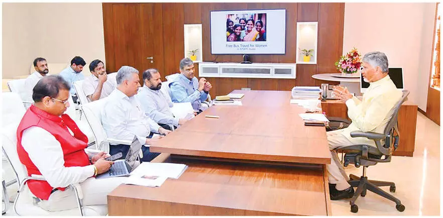 Vijayawada: Chief Minister N Chandrababu Naidu on Monday directed officials to implement a 'zero fare ticket' system for women passengers availing free bus travel scheme in the Andhra Pradesh State Road Transport Corporation (APSRTC), slated to commence on August 15.