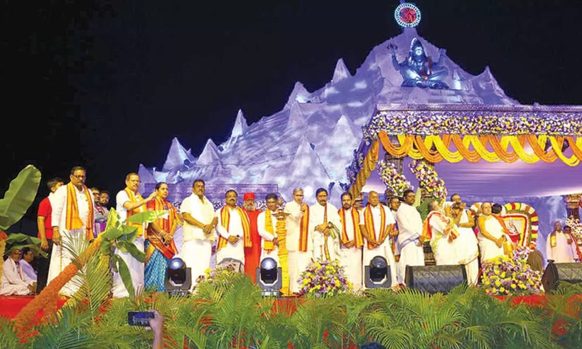 Srisailam: The sacred Koti Deepotsavam, a key highlight of the Kartika Masotsavams, was celebrated with grandeur at the Srisailam temple on Friday. Devotees thronged the temple premises as the event commenced at the Gangadhara Mandapam in front of the main shrine, where a specially arranged stage was set up for the ceremonial proceedings.