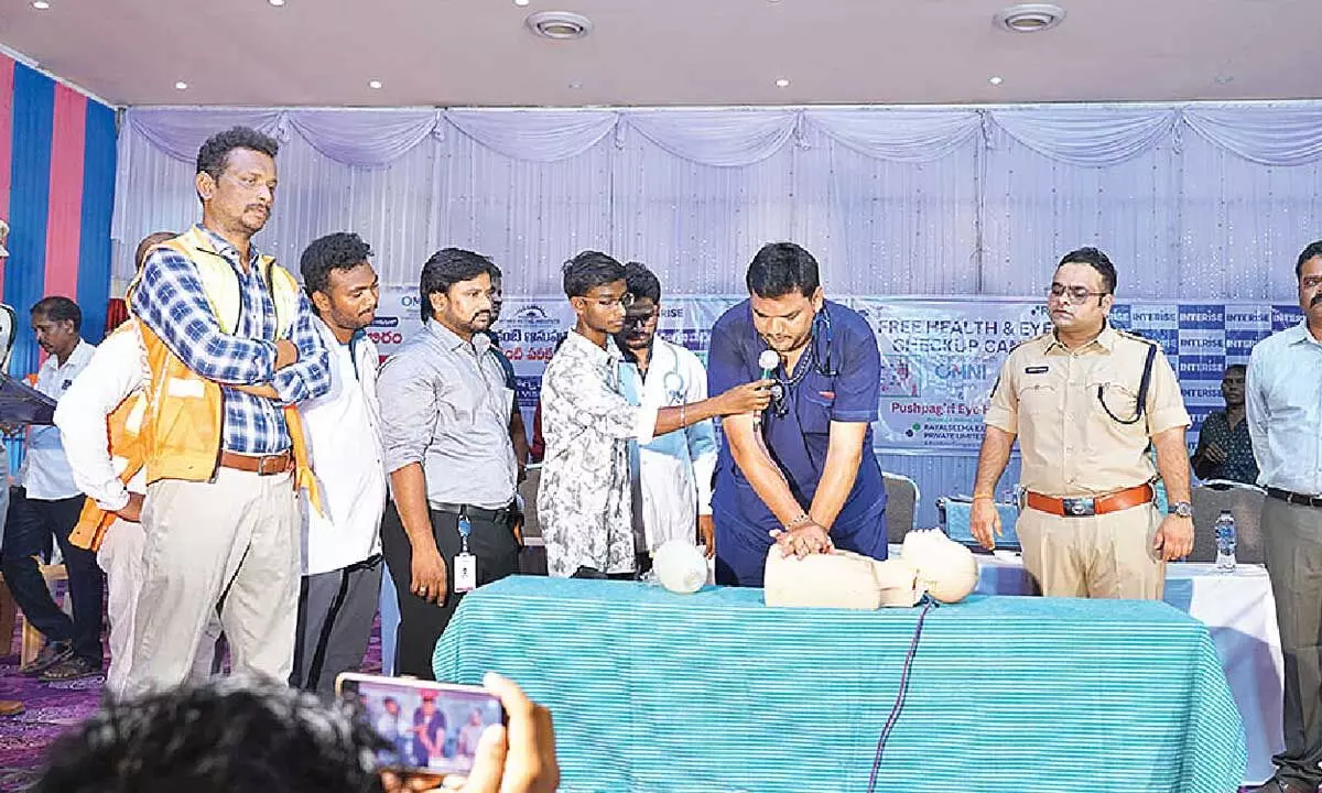 Nandyal: Following the directions of district SP Adhiraj Singh Rana, an innovative free medical camp was conducted, under the supervision of Nandyal traffic police on Thursday. Over 250 individuals benefited from the camp, and every participant was educated on road safety and traffic rules through informative traffic signboards and posters.