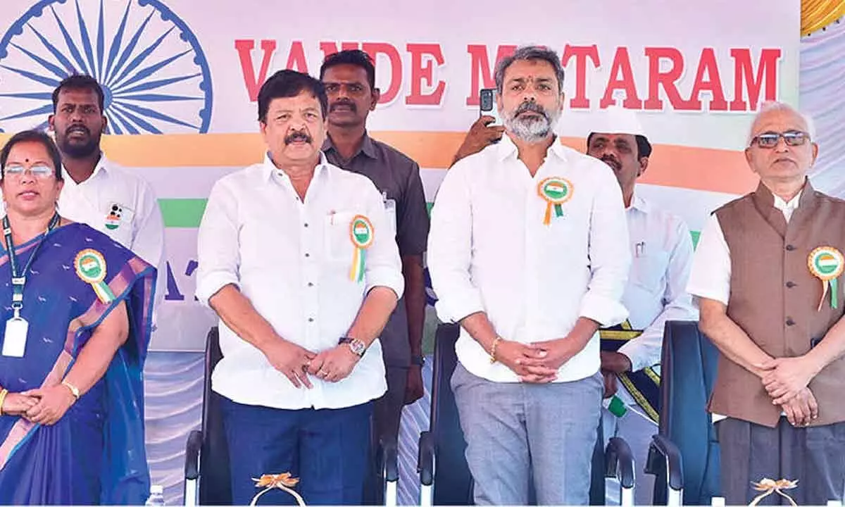 Rajamahendravaram: Tourism, Culture and Cinematography Minister Kandula Durgesh has called upon the student community to move forward with a strong sense of patriotism and to always remember the unparalleled sacrifices of freedom fighters. He spoke at the grand celebrations marking 150 years of the composition of Vande Mataram, held at Adikavi Nannaya University (AKNU) on Saturday. Over 20,000 students from the university and its affiliated colleges participated in the programme, which emerged as a collective platform reflecting patriotism, cultural heritage, and national consciousness. The event was organised to recall the spirit of the Vande Mataram movement that played a key role in India’s freedom struggle.