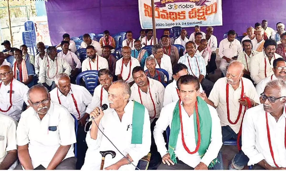 AP Rythu Sangham senior leader Y Kesava Rao criticised the recent State Budget, noting that while Rs 52,000 crore was allocated to agriculture, there was no specific mention of tenant farmers. Tenant Farmers’ Association State General Secretary Maganti Haribabu alleged that the present administration was continuing policies of the previous regime and questioned the allocation of land to corporates at nominal rates. The protest was presided over by Krishna district president TV Lakshmana Swamy. Leaders Panchakarla Rangarao, J Venkateswara Rao, and G Seetha Reddy were honoured with initiation garlands by Vadde to mark the beginning of the hunger strike. State Vice-President Gopal and other leaders also participated. Progressive songs rendered by farmers’ leader Alibaba.