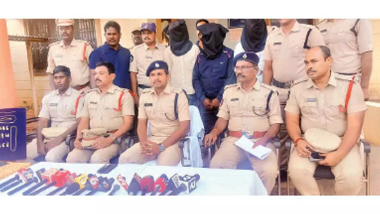 The offences were reported in Madakasira Market, Penugonda Market, Madakasira Rural and other police station limits including Agali, Gudibanda, Kalyandurg (KIA), Roddam, Penukonda, Somandepalli and Parigi. The SP said 27 tolas of gold were recovered from the gang. One more accused is yet to be arrested. Three special police teams played a crucial role in tracing and arresting the accused. The SP commended the officers for their coordinated efforts. DSP Narsingappa and Circle Inspectors Raghavan, Sekhar and Raj Kumar were present at the media briefing.