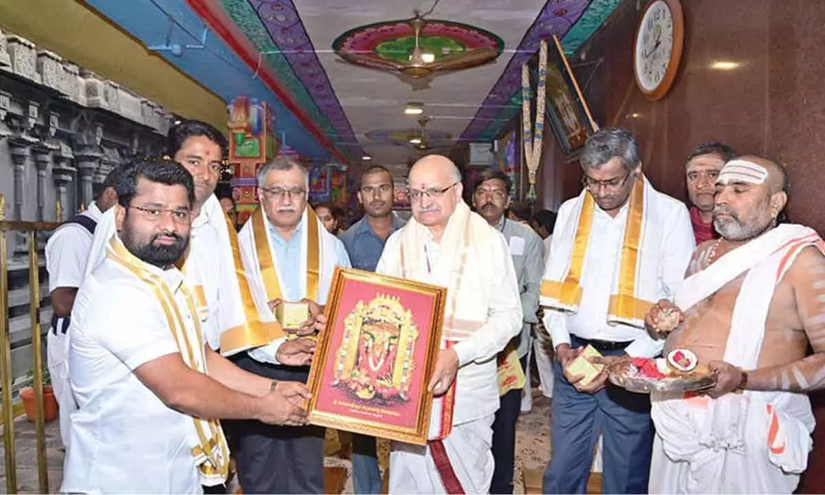 The Devasthanam Executive Officer and Special Grade Deputy Collector VK Seena Naik made elaborate arrangements for the smooth conduct of the darshan. The NITI Aayog CEO performed special rituals andoffered prayers to the presiding deity, fulfilling his vows. After the darshan, Vedic scholars rendered Veda Ashirvachanam to the dignitary.