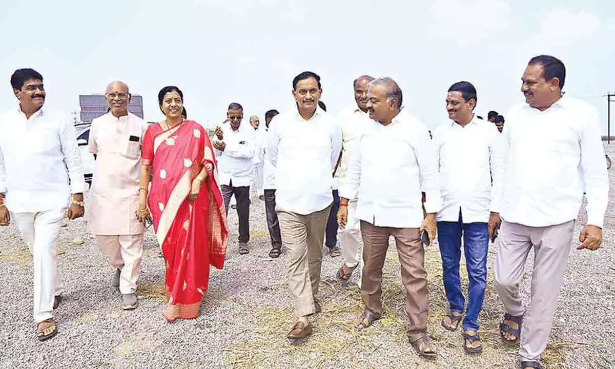 On Wednesday, they inspected the site for the proposed NTR District TDP office at Gollapudi, near Vijayawada.