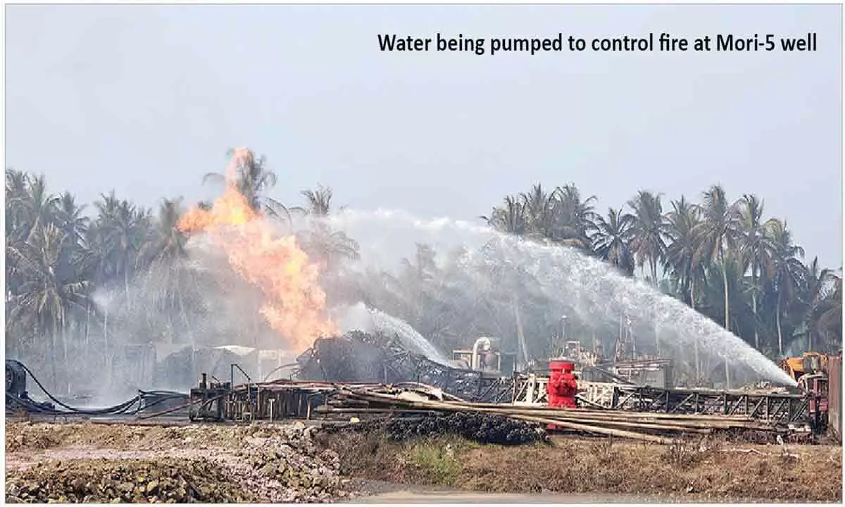 As the fire intensity has reduced, the ONGC personnel have reached about 10 metres closer to the well to implement the blowout control plan. Firefighters were continuing to sprinkle water over the well. It may take a few more days to douse the fire. The ONGC said on Wednesday that it made significant progress in blowout control operations. The state-owned company continues to undertake focused blowout control at Well Mori-5, operated by PEC contractor Deep Industries.